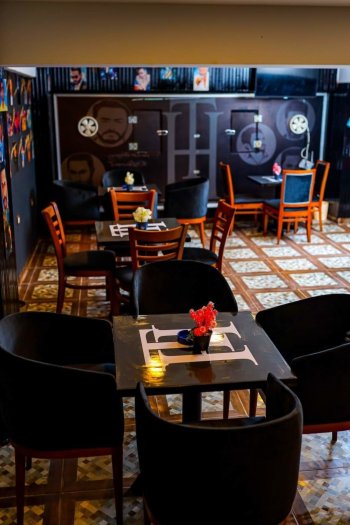 لهذا الهدف قام بتعليق صور تامر حسني، على حيطان المكان بالإضافة لوضع TH على الطاولات والأكْوُاب، هو كذلك يقوم بتقديم العصائر والمشروبات كافة في اكواب مكتوب عليها كلمات من اغاني حسني.