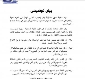 بعد تصريحات الممثل المصري محمد صبحي التي إستدعت رداً من رئيس هيئة الترفيه السعودية تركي آل الشيخ، وسلسلة من الاخذ والرد بين الطرفين، أصدرت نقابة المهن التمثيلية في مصر برئاسة النقيب أشرف زكي بياناً توضيحياً بشأن هذه الازمة جاء فيه ما يأتي: