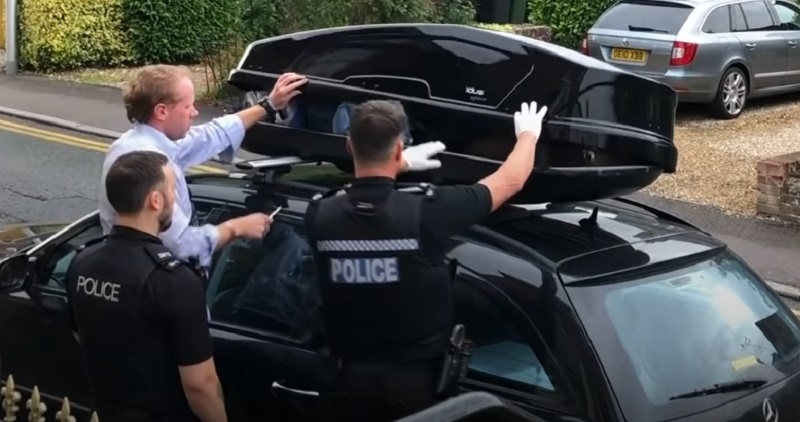 وفي وقت لاحق، حضر رجال الشرطة إلى المكان، عندما كانت ساقا الرجل تتدليان من صندوق السيارة.