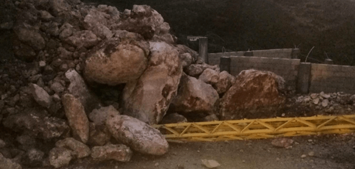 تسببت الأمطار الغزيرة التي هطلت اليوم في الضنية في انهيار صخري أدى إلى قطع الطريق في بلدة بيت زود، إضافة إلى انهيار عمود كهرباء.
