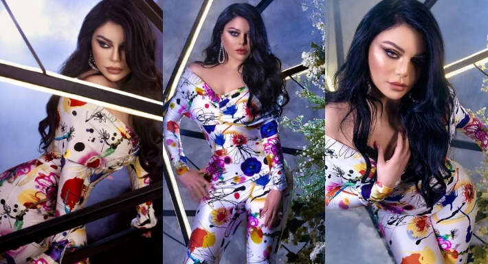 وارتدت هيفاء وهبي جمبسوت مختلف، كان ضيقا أبيض يدمج ألوان كثيرة من RAMZEN لمجموعة ربيع وصيف 2022.