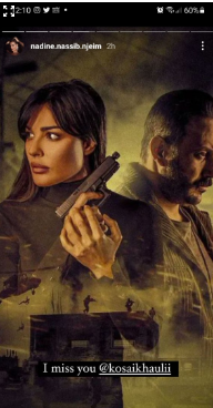 نشرت الممثلة نادين نسيب نجيم صورة عبر خاصية "الستوري" على حسابها الخاص على انستغرام ظهرت فيها مع الممثل السوري قصي خولي خلال مشاركتهما في مسلسل "2020".