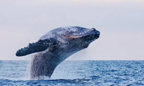 وأظهرت لقطات الطائرات المسيرة الحوت وهو يسبح ببطء وجسده تحت الماء مباشرة ويصعد ليتنفس.
