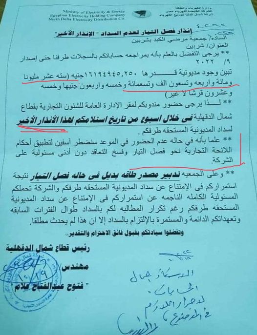 هددت وزارة الكهرباء المصرية، مستشفى شربين لأمراض الكبد بمدينة المنصورة بمحافظة الدقهلية، بقطع التيار الكهربائي عنها بعد أسبوعٍ كحدّ أقصى، في حال التخلّف عن دفع المستحقات المطلوب تحصيلها، واعتبرت أن هذه الإنذار الأخير.