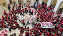 تزامناً مع وصول رئيس وزراء الكيان الإسرائيلي بنيامين نتنياهو إلى الولايات المتحدة في زيارة هي الأولى منذ بدء الحرب على غزّة، وقُبيل إلقاء كلمته المرتقبة أمام الكونغرس الأميركي غداً الأربعاء، نظّم ائتلاف "يهود من أجل وقف تسليح إسرائيل" احتجاجاً داخل الكونغرس للمطالبة بإنهاء الحرب على غزة.