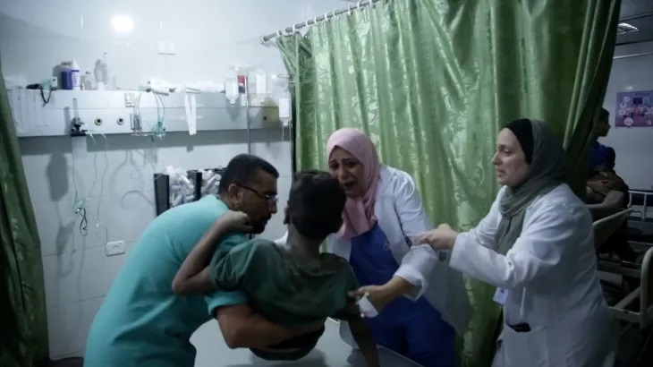 وبحسب تقرير بث على قناة الجزيرة، فقد هرعت إحدى العاملات بالمجال الطبي نحو طفلها الذي قدم إلى مستشفى العودة شمالي قطاع غزة مصابا، بينما حاولت زميلاتها التخفيف عنها من وطأة الصدمة والقلق والخوف الذي انتابها.