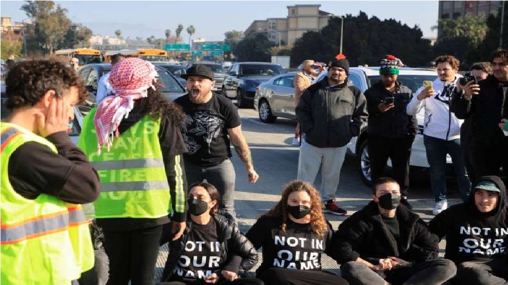 قام نشطاء من جماعة يهودية تطالب بوقف إطلاق النار في قطاع غزة بعرقلة حركة المرور على طريق سريع مزدحم في لوس أنجليس خلال ساعة الذروة صباح يوم الأربعاء.
