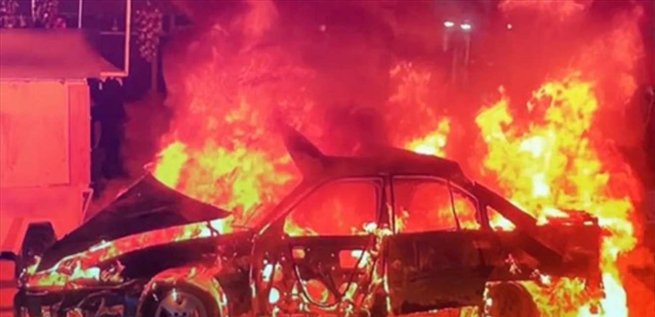 بعد ذلك، قامت بسكب البنزين عليه داخل السيارة ثم أشعلت النار فيه.