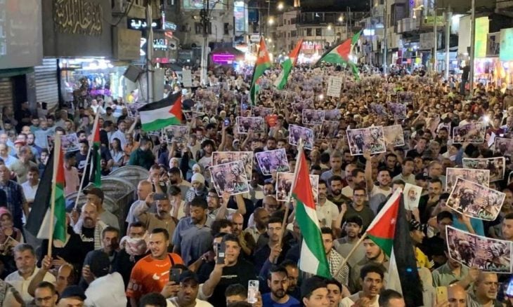 شارك مئات الأردنيين، مساء الجمعة، في مسيرة تضامنية مع غزة تندد بـ”العدوان” الإسرائيلي على القطاع الفلسطيني وتطالب بإغاثة أهله، تحت شعار “أوقفوا إمداد العدو.. أغيثوا أهلنا في غزة”.
