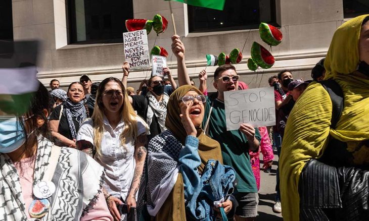 وواجه الرئيس الأمريكي في العديد من المناسبات بأنحاء شتى من البلاد احتجاجات من مدافعين مؤيدين للفلسطينيين وصفوه «بجو الإبادة الجماعية» لدعمه الثابت لإسرائيل.