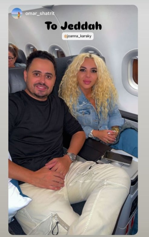 كما ظهرت في صورة أخرى برفقة زوجها من داخل الطائرة كاشفة انهما يتوجهان إلى جدة.