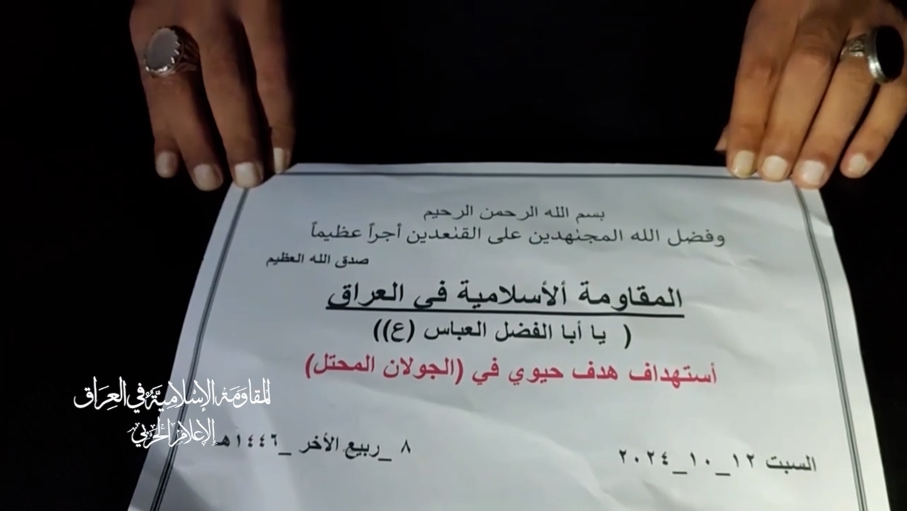 أعلنت المقاومة الإسلامية في العراق، اليوم السبت، أنها هاجمت هدفيين حيويين في الجولان السوري المحتل في عمليتين منفصلتين بواسطة الطيران المسير، نصرة لفلسطين ولبنان ورداً على مجازر الاحتلال.