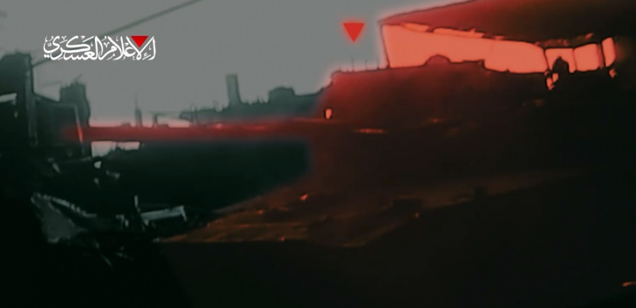 بثت كتائب القسام، الجناح العسكري لحركة حماس، مشاهد توثق استهداف مقاوميها لدبابة "ميركفاه" لجيش الاحتلال الإسرائيلي بعبوة من نوع "شواظ" في شارع دواس بمنطقة الفاخورة غرب مخيم جباليا شمال قطاع غزة.