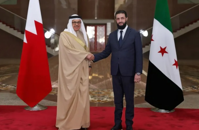 استقبل قائد الإدارة السورية الجديدة، أحمد الشرع، اليوم الأربعاء، وفداً بحرينياً برئاسة وزير الخارجية عبد اللطيف الزياني، في العاصمة السورية دمشق، وحضر اللقاء وزير الخارجية السوري بحكومة تصريف الأعمال، أسعد الشيباني، الذي استضاف الاجتماع في قصر الشعب.