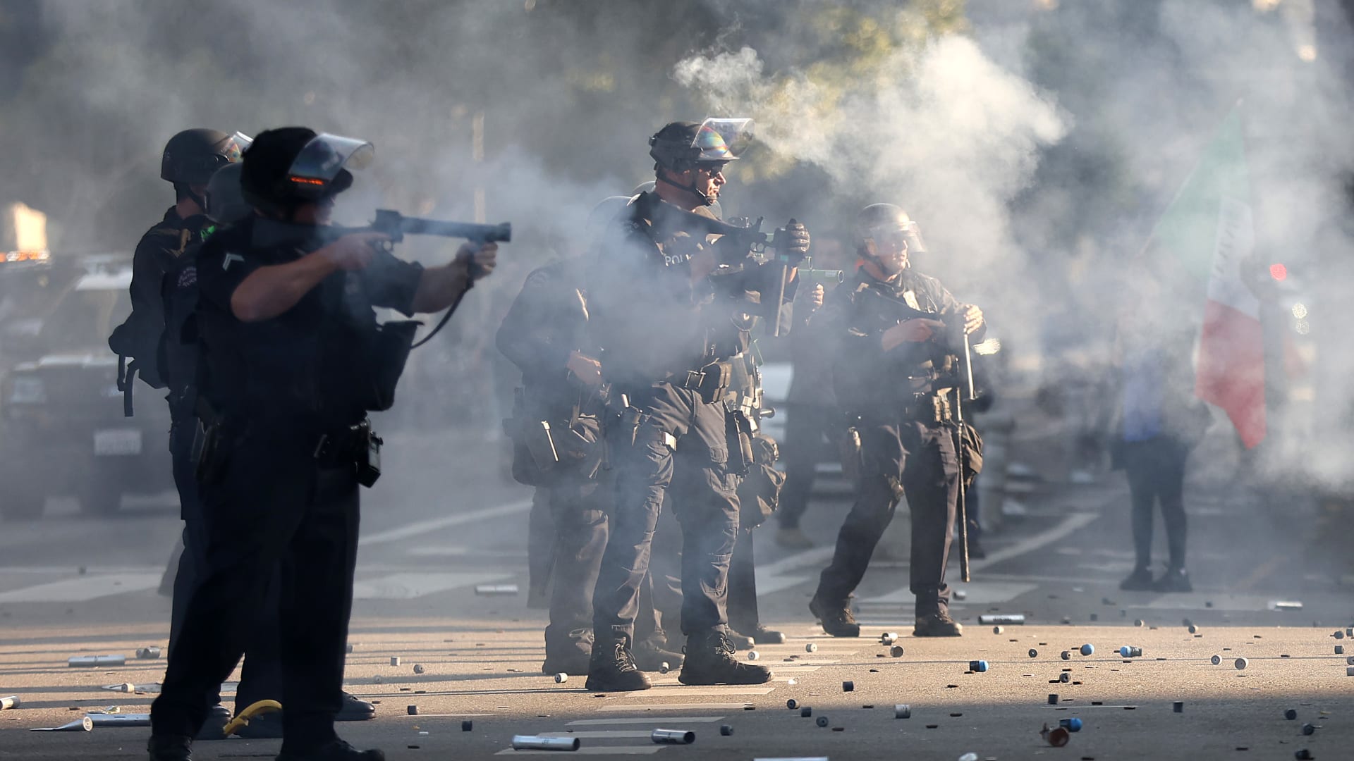 أفادت وكالة نوفوستي بأن "الشرطة في لوس أنجلوس استخدمت قنابل الصوت وكذلك تم استخدام شرطة الخيالة ضد المتظاهرين".
