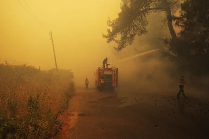 تصدرت مشاهد الحرائق المروعة في غابات ريف اللاذقية بسوريا منصات التواصل الاجتماعي خلال اليومين الماضيين، حيث التهمت النيران مساحات شاسعة وارتفعت ألسنة اللهب بشكل غير مسبوق، في ظل استمرار محاولات فرق الدفاع المدني السوري والقبعات البيضاء للسيطرة عليها، وساهمت سرعة الرياح وقوتها في اتساع رقعة الحرائق وصعوبة احتوائها.