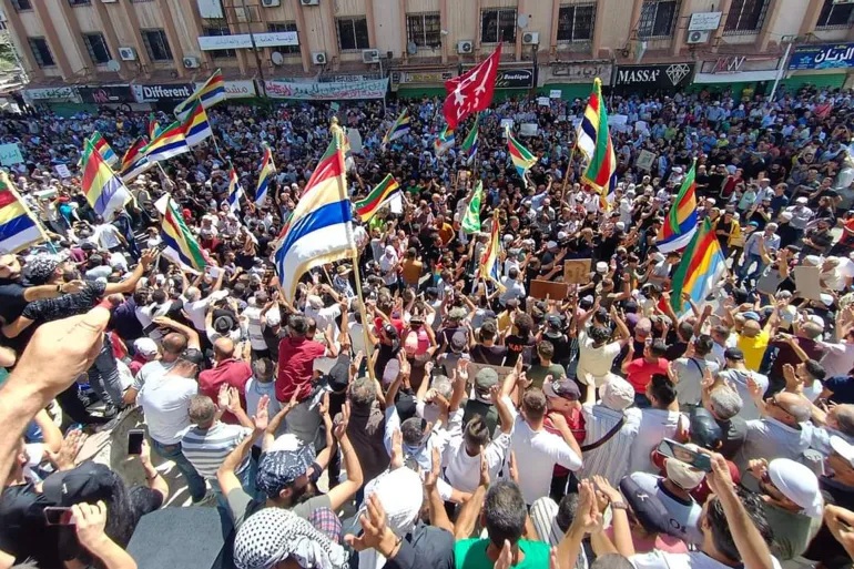 في مشهد رمزي مثير، خرج متظاهرون في ساحة الكرامة وسط السويداء، بتاريخ 16 آب، رافعين أعلام الطائفة الدرزية إلى جانب العلم الإسرائيلي، في خطوة غير مسبوقة. رفع المتظاهرون شعارات تطالب بـ"حق تقرير المصير"، وتعلن رفض "الفيدرالية"، مع دعوات واضحة للاستقلال عن الدولة السورية.
