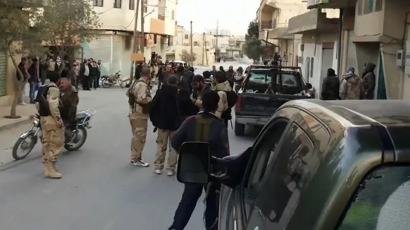 وبحسب ما أكده عدد من الأهالي، وصلت إلى الحي ثلاث سيارات دفع رباعي تقل عناصر مسلحة بكامل عتادها، يرتدون لباساً أسود، ويقودهم شخص يُعرف باسم “أبو أنس” بمساعدة مسؤول أمني يُدعى “أبو حذيفة”، في حين تحدث شهود عن وجود شخص ثالث يُلقب بـ“أبو النور” يشرف على العملية من دون الظهور العلني.