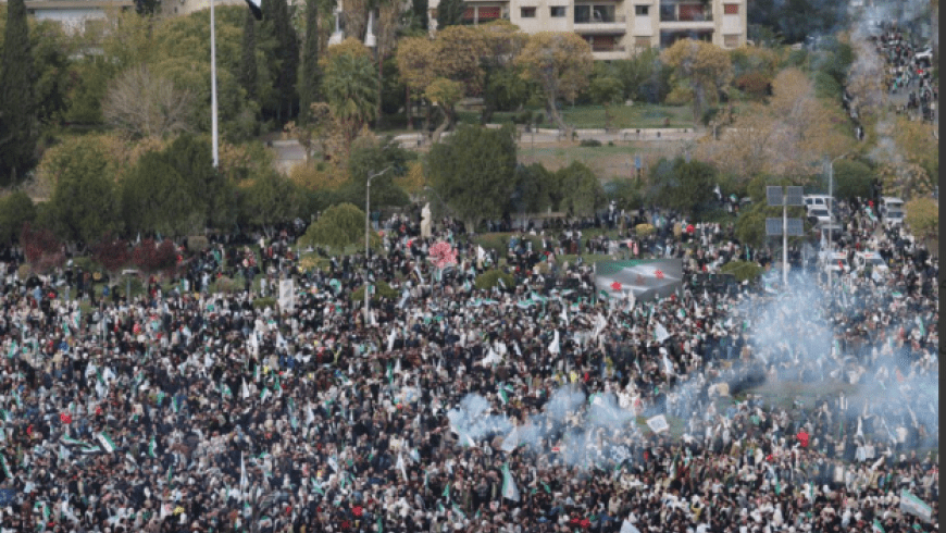 تجمعت حشود ضخمة في ساحة الأمويين بالعاصمة دمشق، قادمة من مختلف مناطق البلاد للاحتفال بالذكرى السنوية الأولى لسقوط حكم النظام السابق الأعلام السورية رفرفت في كل الأرجاء والأغاني الوطنية تصدح عبر مكبرات الصوت، فيما امتزجت الفرحة بالتماسك الوطني والإصرار على مستقبل أكثر أمنًا واستقرارًا.