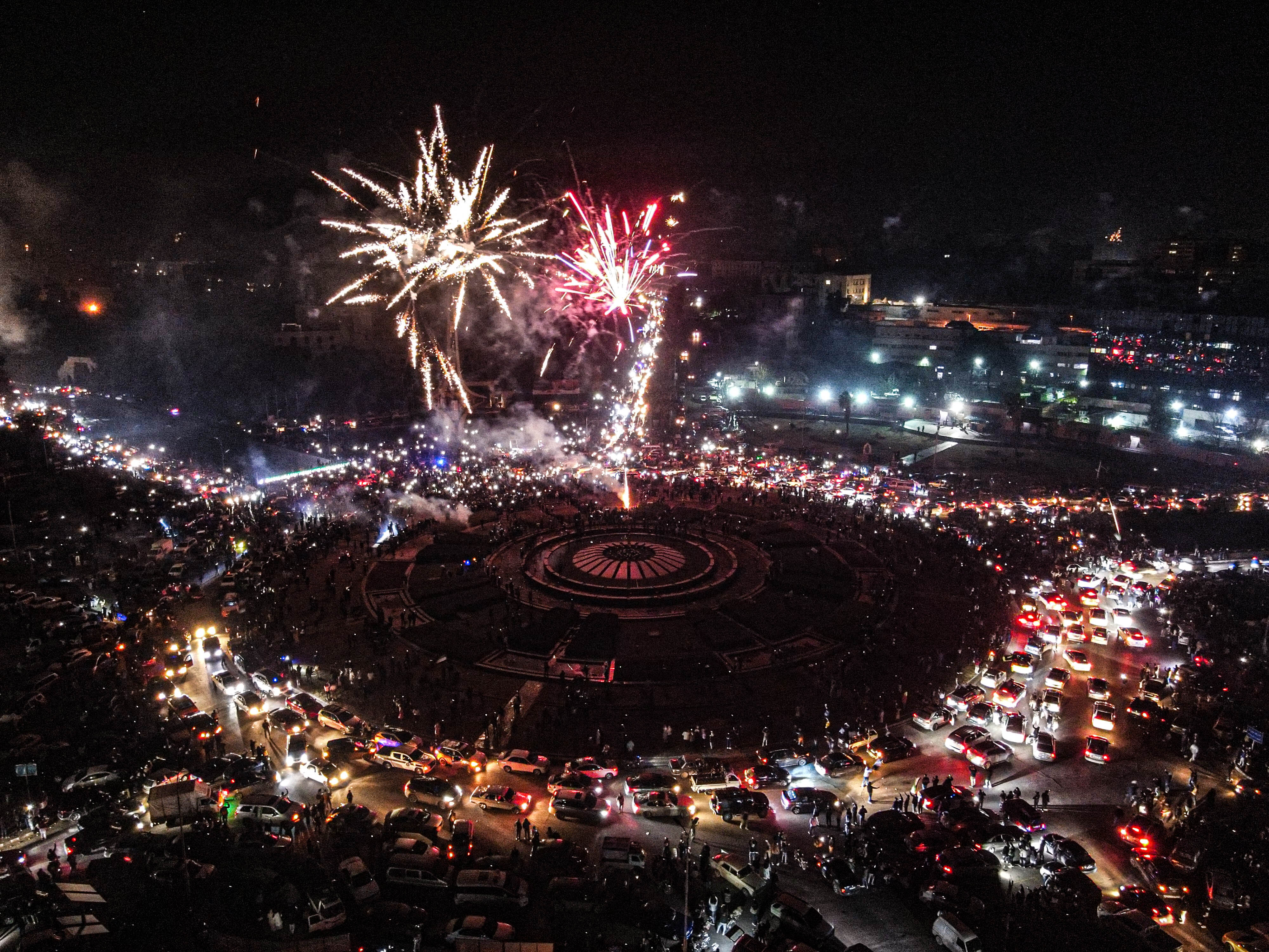 في الذكرى الأولى لسقوط نظام الأسد البائد، خرجت عروض عسكرية ومسيرات مدنية في عدد من المدن والبلدات الواقعة ضمن مناطق متفرقة من الجغرافيا السورية، حيث شهدت الساحات الرئيسية تجمعات شعبية واسعة ومشاركات من تشكيلات عسكرية وأهالي. وشهدت الاحتفالات تحليق طيران شراعي في أجواء بعض المدن تزامناً مع المسيرات المدنية والمواكب الآلية التي جابت الشوارع، في مشاهد احتفالية عبّرت عن مرور عام على التغيير السياسي. كما تزامنت الفعاليات مع مسير عسكري نفّذته قوات وزارة الدفاع في الحكومة السورية الانتقالية في عدة مناطق، تخلّلته استعراضات لآليات عسكرية وانضباط طوابير المشاة، ضمن فعاليات رسمية أُقيمت بهذه المناسبة. في المقابل، لم تُسجّل أي عروض عسكرية أو مظاهر احتفالية مماثلة في مناطق سيطرة قوات سوريا الديمقراطية، حيث خلت تلك المناطق من أي نشاط مرتبط بإحياء الذكرى.