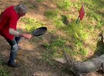 يعانى البعض من فوبيا الخوف من الحيوانات الأليفة كالقطط والكلاب، والتى تدفعهم للهروب من أمامهم، رغم أن أغلبها لن تكون عدوانية، ولكن ماذا يحدث إذا وجدت نفسك أمام تمساح، هذا بالضبط ما حدث مع رجل عجوز، في المقاطعة الشمالية من استراليا، حيث هجم التمساح على الرجل، الذى لم يجد ما يدافع به عن نفسه سوى مقلاة.