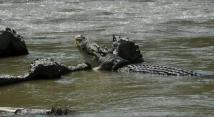 مجرم هرب من الشرطة واختبأ في بحيرة تماسيح