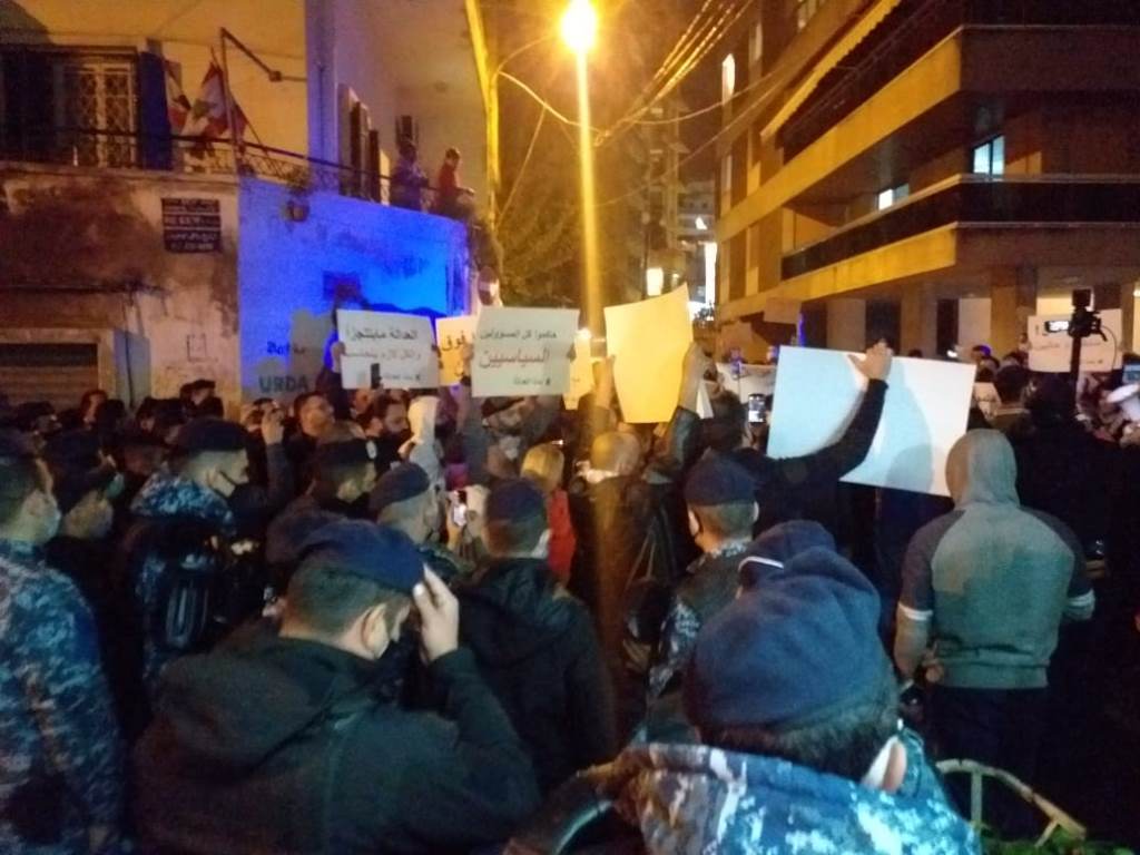 ورفع المتظاهرون اللافتات التي تدعو لمحاسبة كل المسؤولين الاداريين والامنيين الذين سهلوا وتسببوا بحدوث الانفجار وتحقيق العدالة، وسط انتشار للقوى الامنية في محيط منزل صوان.