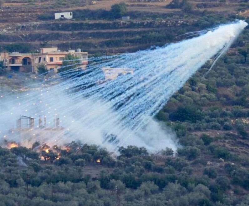 كذلك أفادت الوكالة الوطنية للإعلام اللبنانية الرسمية بأن الجيش الإسرائيلي استهدف أيضاً قريتي تل نحاس والخيام قرب الحدود، ما زاد من حجم الأضرار على المدنيين والبنية التحتية وتستعمل إسرائيل الفوسفور الأبيض عادة لتغطية عملياتها العسكرية ستاراً دخانياً، لكن استخدامه فوق مناطق مأهولة يثير جدلاً قانونياً وأخلاقياً، ويعكس تجاهل حماية المدنيين في مناطق الصراع.