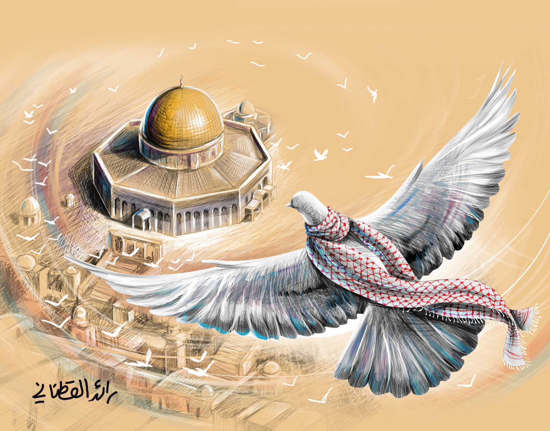 ليس بالحجر وحده يحارب الشعب الفلسطيني جيش العدو، وإنما بالريشة والقلم وكافة أنواع "الأسلحة" التي تتوارثها أجيال القضية عقداً بعد آخر ممن عاشوا خارج أرضهم، لتبقى "حاضرة في قلوبهم لا تغيب، رغم أنهم لم يمسكوا ترابها يوماً"، كما هو حال الفنان الرسام رائد القطناني.