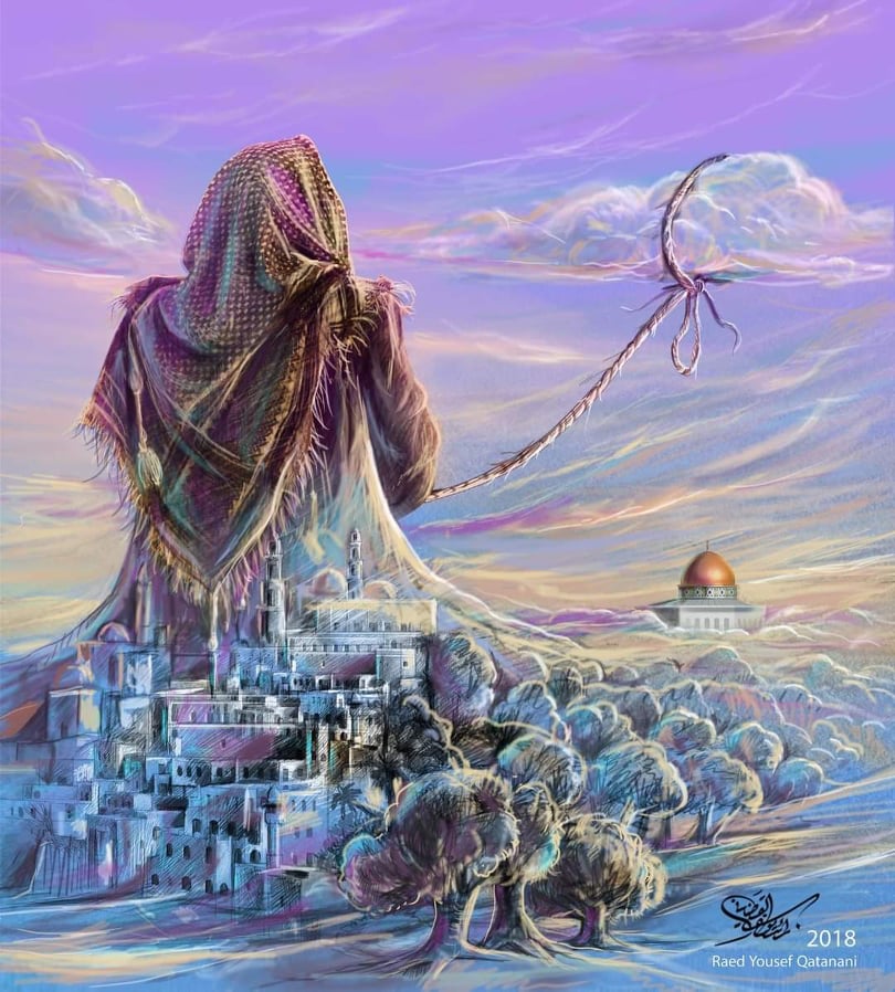 وأشار الفنان الفلسطيني إلى أن لوحاته –خاصة الحالية- تعكس معاناة أبناء موطنه وتحمل في معظمها رائحة الحنين للأرض المقدسة، مبيناً بالقول: تحضر القدس في أعمالي بحرقة خاصة هذه الأيام التي تزيد تفاعلي معها أكثر فأكثر، لتبقى عاصمة كل الأحرار في العالم.