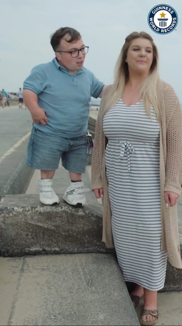 وعرض الحساب الرسمي لـ"غينيس" على موقع "إنستغرام" مقطع فيديو يظهر الزوجين جيمس (33 عاما) وكلوي لوستد (27 عاما)، ويظهر في الفيديو فارق الطول الكبير بين الزوجين، حيث يبلغ طول الزوج جيمس 109.3 سنتيمتر، فيما يبلغ طول الزوجة كلوي 166.1 سنتيمتر، أي أن الزوجة تفوق زوجها طولا بمقدار 56.8 سنتيمتر.