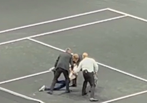 أحدث ناشط بيئي، حالة من الفوضى، يوم الجمعة، في مباراة تنس بالعاصمة البريطانية لندن، عندما اقتحم الملعب وقد أضرم النار في نفسه، مما أدى إلى توقف مباراة ستيفانوس تيتيباس ودييغو شوارتزمان في كأس ليفر للتنس لفترة وجيزة.
