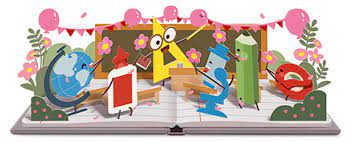 ونشر "غوغل" رسما متحركا على صفحته الرئيسية تظهر دفترا ولوحا مدرسيا، وفوقهما أدوات تدريس من قبيل مجهر ومثلث وخريطة.
