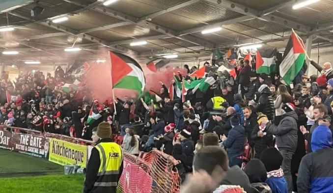 ولم يفوت عشاق الكرة المستديرة أيضا الفرصة للتعبير عن دعمهم للقضية الفلسطينية، حيث صدحت جماهير نادي ديري بهتافات داعمة لغزة والقضية الفلسطينية خلال مباراة نادي المدينة أمام نادي شيلبورن في الدوري الأيرلندي الممتاز.