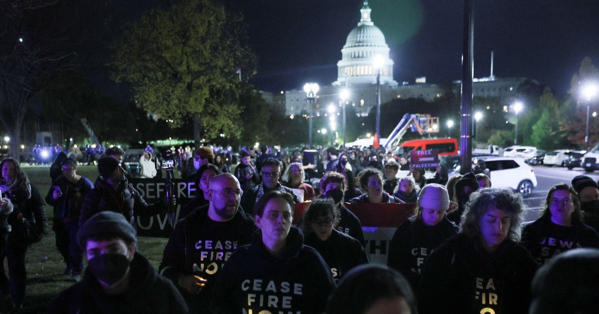 وردد المحتجون هتاف "أوقفوا إطلاق النار الآن"، قبل أن يتم إخراجهم من المبنى.