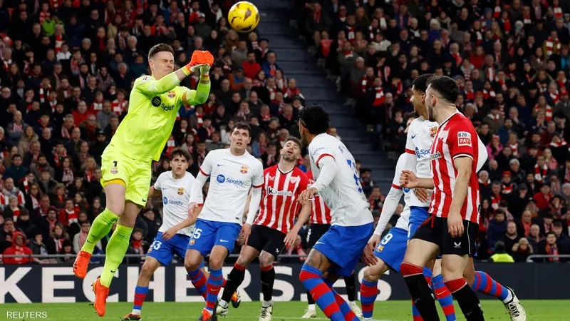 تعادل برشلونة وأتليتيك بيلباو سلبيا في دوري الدرجة الأولى الإسباني لكرة القدم يوم الأحد، مما أضاع فرصة كبيرة لبرشلونة لكسب الأرض في ملاحقته للمتصدر ريال مدريد الذي تعادل 2-2 مع فالنسيا يوم السبت.