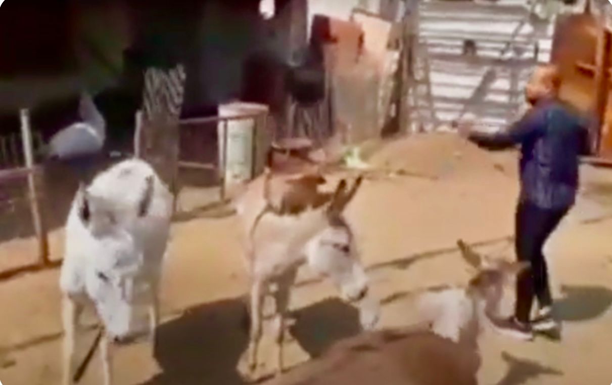 وظهر بالفيديو حظيرة فيها عدد كبير من الحمير، وقال صاحبها إنه يبيع حليبها للعلاج، تحوي الحظيرة على عدد من الحمير وتم اكتشافها أثناء مراقبةٍ للمباني غير القانونية، إذ لاحظ الموظف الرسمي للسلطات الرسمية أنّ المبنى هو "حظبرة للحيوانات" وسط حي سكني، فأبلغ صاحب الحظيرة بقرار الإخلاء في وقت تحدث صاحب الحظيرة عن تربيته للحمير ليبيع حليبها!