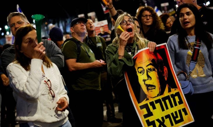 "تظاهر آلاف المستوطنين، اليوم السبت، في مدن مختلفة، ضد الحكومة الحالية برئاسة بنيامين نتنياهو، وللمطالبة بإبرام صفقة تبادل أسرى مع حركة "ح ما س.