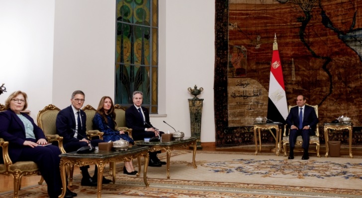 استقبل الرئيس المصري، عبد الفتاح السيسي، اليوم الاثنين، وزير الخارجية الأميركي، أنتوني بلينكن، على رأس وفد أميركي مرافق، بحضور رئيس جهاز "المخابرات العامة" المصرية، اللواء عباس كامل.