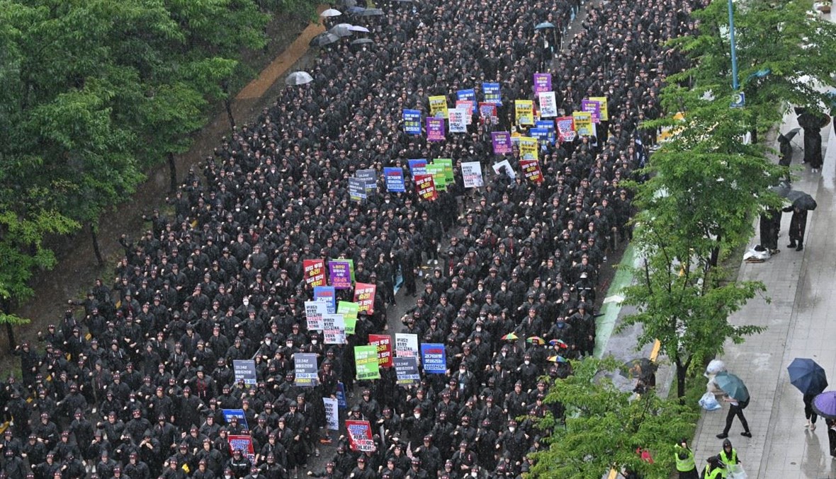 ومنذ الإثنين، التزم أكثر من خمسة آلاف من موظفي سامسونغ إضراباً عن العمل لمدة ثلاثة أيام بعد فشل مفاوضات مطوّلة بين الطرفين بشأن الأجور والمزايا.