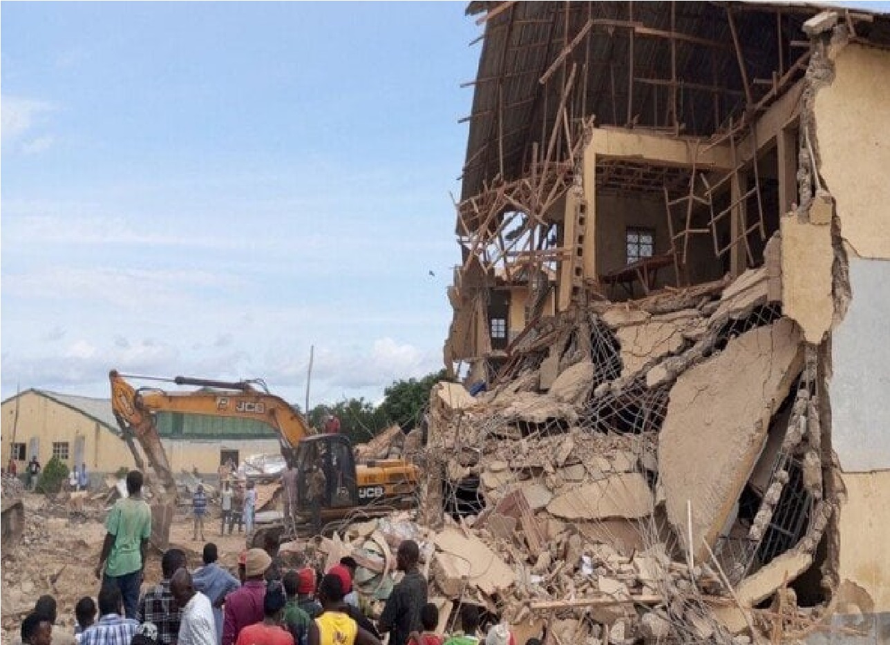 وسمع أصوات الطلاب العالقين يبكون طلبا للمساعدة تحت الأنقاض بعد أن انهارت مدرسة سانت أكاديمي في منطقة جوس نورث بولاية الهضبة.