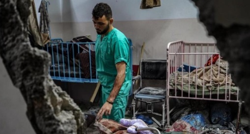 وقال أطباء في المستشفى إنهم مثقلون ولا يستطيعون تقديم الرعاية الصحية الطبية للأعداد الكبيرة من الجرحى بسبب حدة القصف الإسرائيلي والنقص الحاد في الإمدادات الطبية.