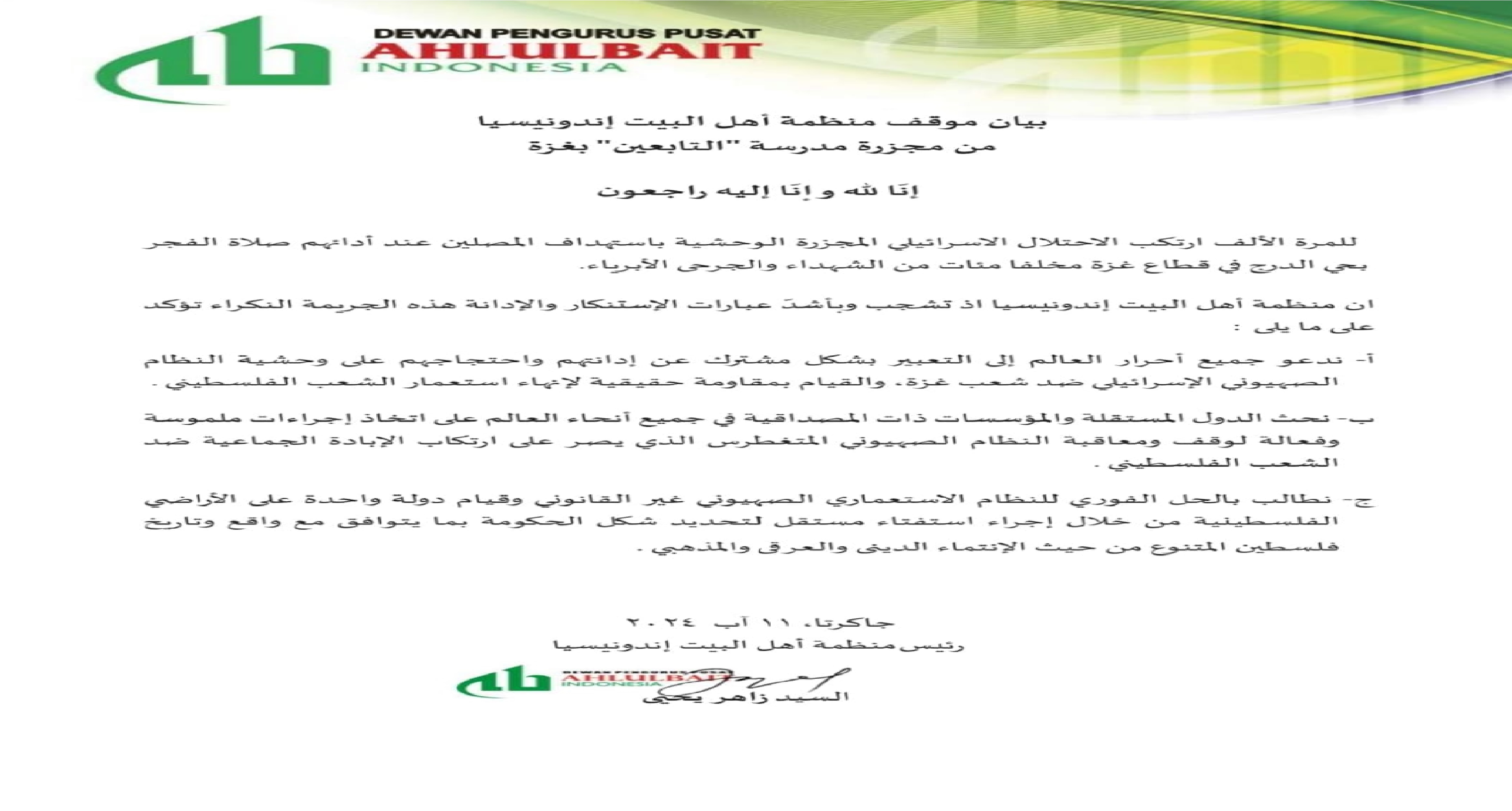 ان منظمة أهل البت إندونيسيا اذ تشجب وبأشد عبارات الإستنكار والإدانة هذه الجريمة النكراء تؤكد على ما يلى :