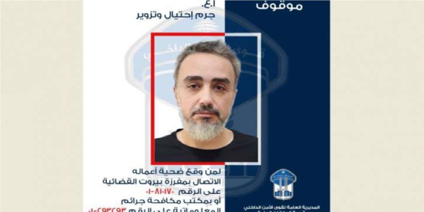 عمّمت المديريّة العامّة لقوى الأمن الدّاخلي، بناءً على إشارة القضاء المختص، صورة شخص أوقفته فصيلة برمانا بجرم احتيال وتزوير واستعمال مزوّر، ويدعى:
