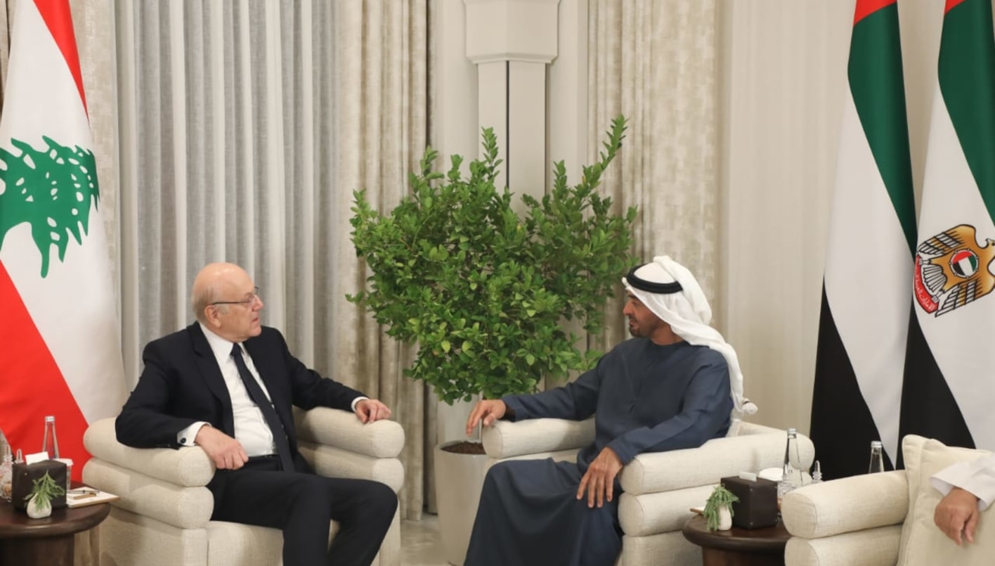 أجرى رئيس حكومة تصريف الأعمال نجيب ميقاتي اتّصالاً برئيس دولة الإمارات العربية المتحدة محمد بن زايد آل نهيان لشكره على وقوفه الدائم الى جانب لبنان، وبشكل خاص دعمه الإنساني الأخير الذي يساهم في إغاثة النازحين ويدعم جهود الحكومة لمواجهة هذه الكارثة الكبيرة التي حلّت بلبنان