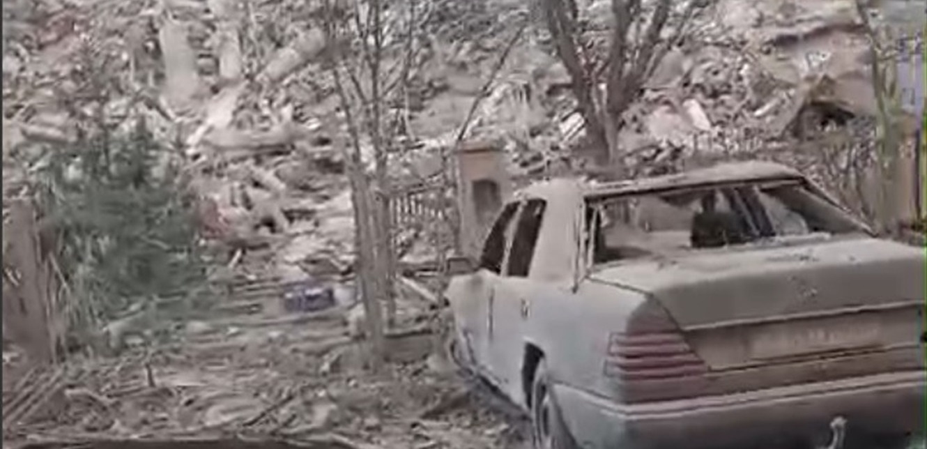فقد أظهرت فيديوهات عدة دمارا كبيرا حيث سويت أبنية على الأرض، ولا يزال الدخان يتصاعد من بعض الأبنية.