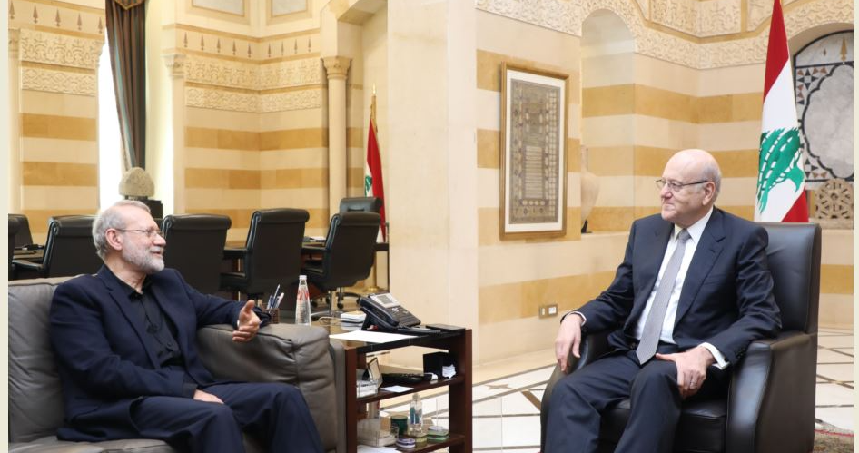 يستقبل الرئيس الحكومي نجيب ميقاتي المستشار الامام السيد علي براكني علي لاريجاني ، قبل ظهر اليوم في السرايا، في حضور المندوب الخاص لوزير الخارجية الايرانية في منطقة الشرق الاوسط السفير محمد رضا شيباني ومستشاري الرئيس ميقاتي الوزير السابق نقولا النحاس والسفير بطرس عساكر والسيد ميقاتي.