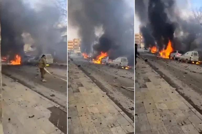 وتناقلت منصات التواصل الاجتماعي مقاطع فيديو توثق الحادث، حيث أظهرت النيران مشتعلة في سيارات عدة، فيما كان أفراد يرتدون زيا عسكريًا يحاولون السيطرة على الحرائق، كما سُمع دوي إطلاق نار في المكان.