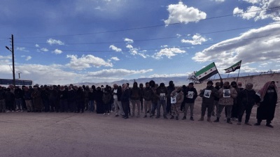 تجمع عشرات المواطنين من أهالي المعتقلين السوريين في لبنان، وقطعوا طريق جديدة يابوس – المصنع على الجانب السوري من الحدود مع لبنان، للمطالبة باستعادة أبنائهم الذين بدأوا إضرابًا عن الطعام في سجن رومية المركزي بلبنان، والذي دخل يومه الحادي عشر على التوالي.