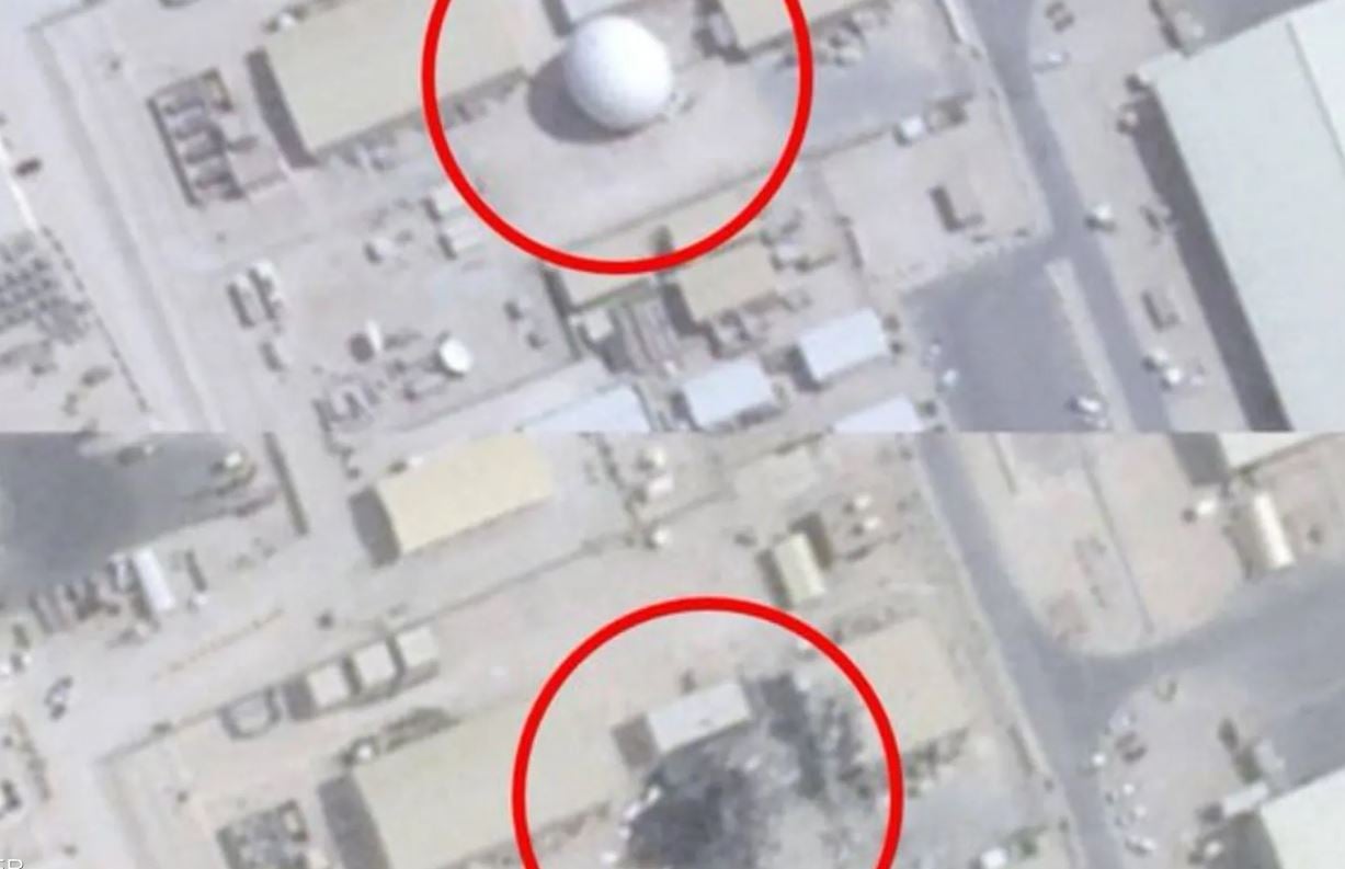 وأظهرت الصور الملتقطة بتاريخ 23 حزيران وجود قبة مثلثية في القاعدة تُستخدم لتأمين معدات الاتصالات الأميركية، قبل أن تختفي في صور لاحقة التقطت في 25 حزيران، والتي كشفت أيضًا عن أضرار واضحة في مبنى مجاور، في حين بدت معظم أجزاء القاعدة دون تأثير يُذكر.